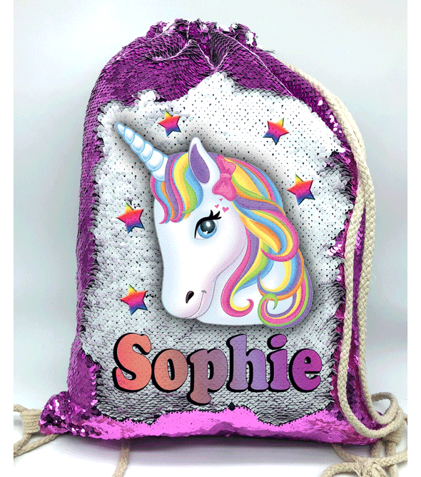 Cute Unicorn Drawstring Bag Great bag that can be used for school and more. This makes the perfect gift for birthdays or christmas. 34 x 45cm Pink, Blue, Gold, Rose Gold or Black Sequins High...