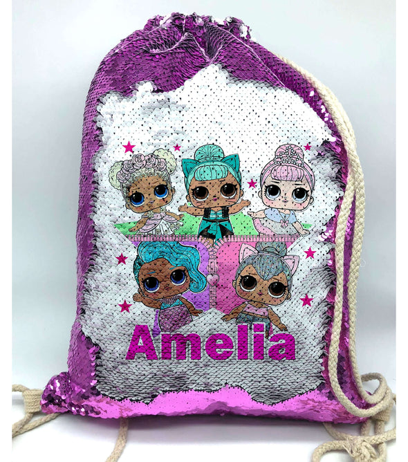 Great bag that can be used for school and more. This makes the perfect gift for birthdays or christmas. 34 x 45cm Lined inside Zipped Pocked inside Pink, Blue or Black Sequins High Quality Print...