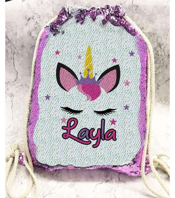 Cute Unicorn Lashes Drawstring Bag Great bag that can be used for school and more. This makes the perfect gift for birthdays or christmas. 34 x 45cm Pink, Blue, Champagne Gold or Black Sequins High Quality...