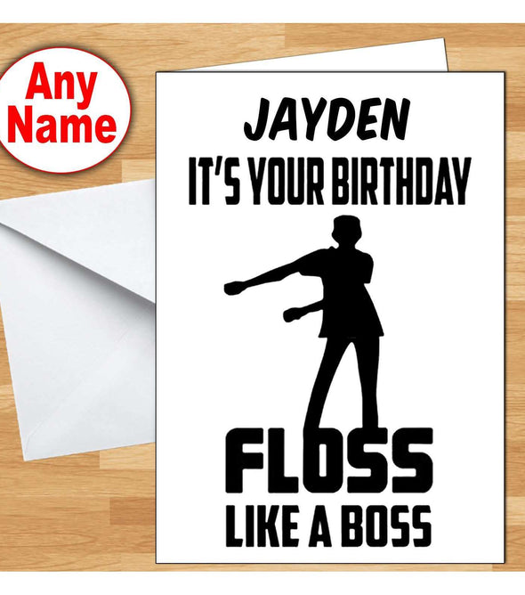Floss like a Boss - Birthday Card A5 size Glossy Finish Full Colour Print Optional inside print Add required name in the text box area. If you require printing on the inside simply enter the...