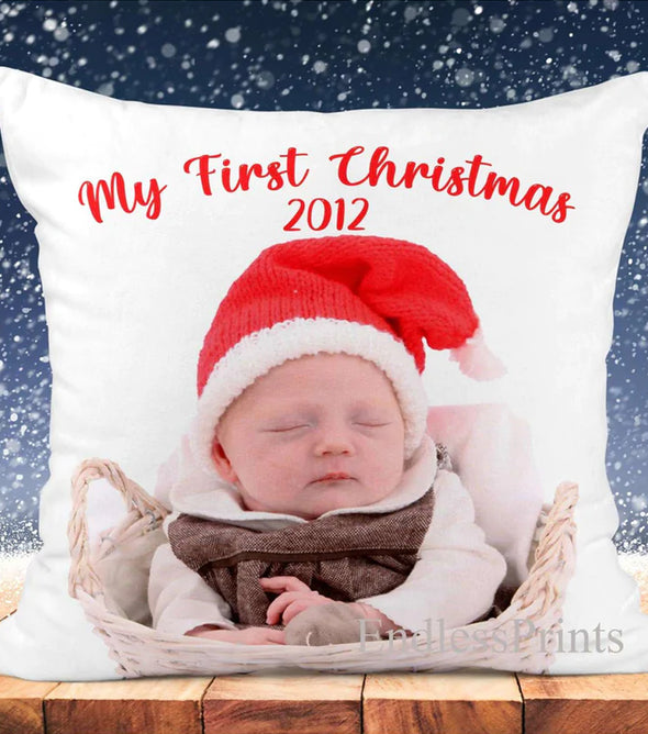 Baby's 1st Christmas personalised cushion with their cute photo and any writingCUSHION SPECIFICATIONS❤️️High Quality Print❤️️Personalised❤️️Zip fastening❤️️Cushion size 40 cm x 40 cm Square,❤️️Cushion filler included❤️️Machine wash at 30 degrees❤️️Do Not Tumble DryPlease upload your image...