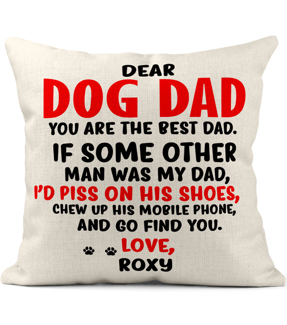 Dog Dad - You Are The Best Cushion Pillow personalised with any name(s)CUSHION SPECIFICATIONS❤️️High Quality Print❤️️Personalised❤️️Zip fastening❤️️Cushion size 40 cm x 40 cm Square,❤️️Cushion filler included❤️️Machine wash at 30 degrees❤️️Do Not Tumble DryPLEASE ADD REQUIRED NAMES...