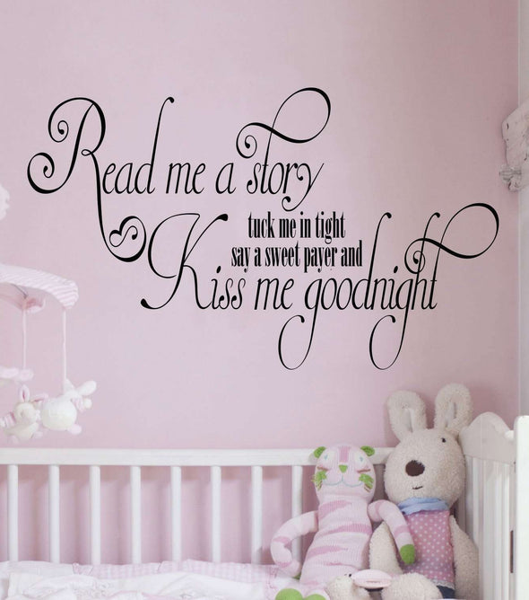 Read me a story, Kiss me goodnight Wall Art Sticker Transform your room with an eye-catching vinyl wall decal that is sure to bring a splash of colour to any room, turning a plain boring...