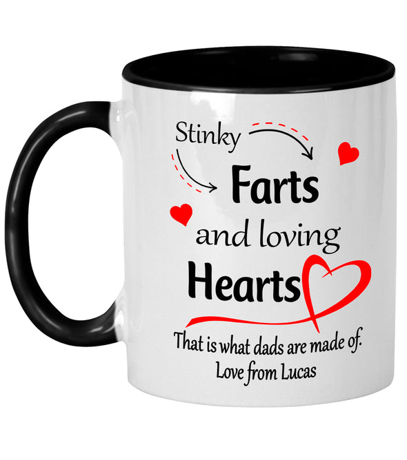 Stinky Farts & Loving Hearts Mug - Personalised Our mugs are sourced from industry leading suppliers to provide consistant quality. We take pride in ensuring all of our products exceed customers expectations. 11oz Personalised with...