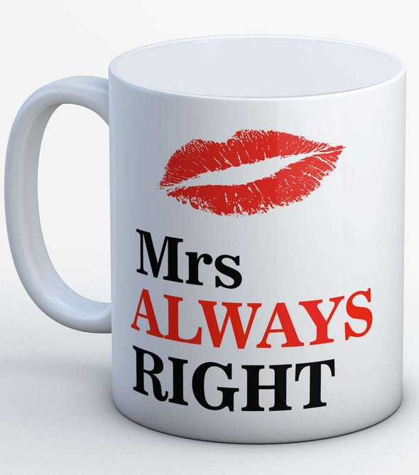 Mrs always right Mug Our mugs are sourced from industry leading suppliers to provide consistant quality. We take pride in ensuring all of our products exceed customers expectations. 10oz Gloss Finish High Quality Print Dishwasher...