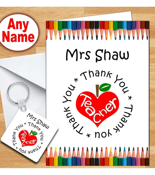 Thank You Teacher Card & Keyring - Personalised Card: A5 size Glossy Finish Full Colour Print Personalised Optional inside print Keyring: 5 x 5 cm High Quality Print Personalised Flexible Keyring To personalise the card...